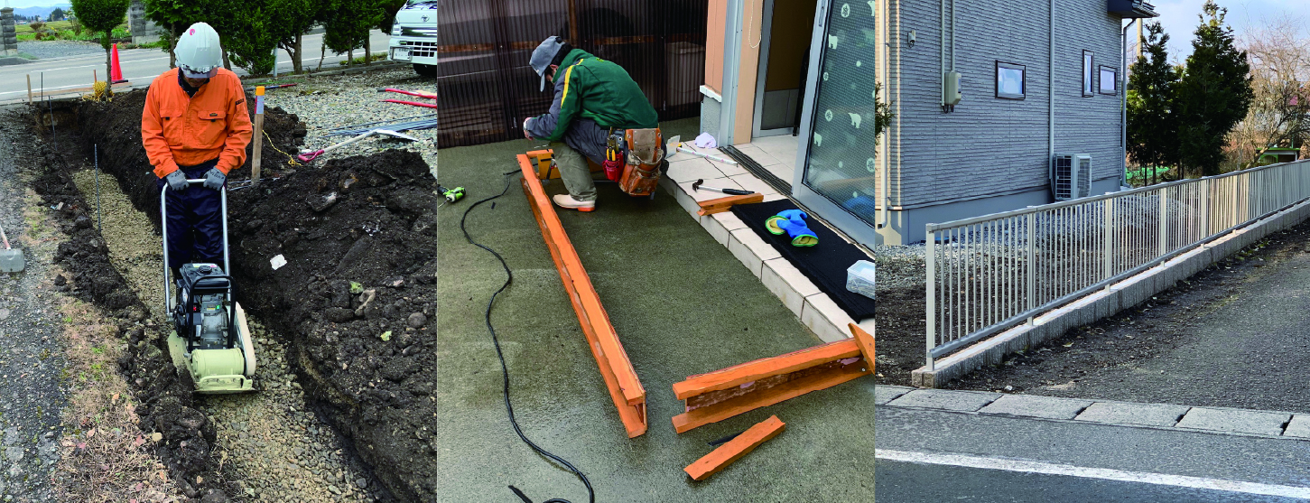 お客様の暮らしをもっと安全に快適にするために門、車庫、カーポート、土間、アプローチ、塀、柵、垣根などの屋外構造物の基礎工事を行っております。