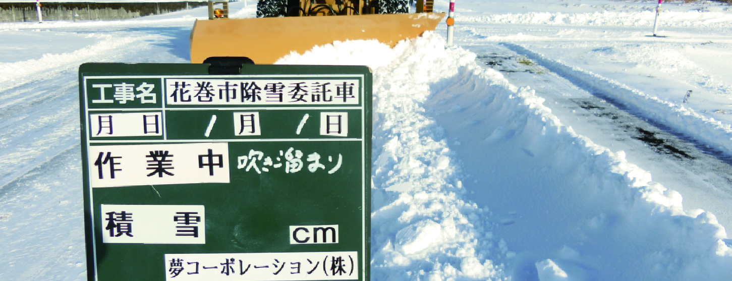 冬期における花巻市の安全な路面状態を確保するため、花巻市より委託を受け出動しております。また、会社、ご自宅前の除雪・排雪作業も行っております。